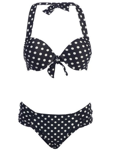 2 PC. Ladies black bikini swimsuit with white polka dots