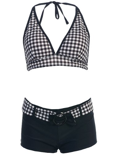 2 PC. Ladies Gingham Black Bikini Swimsuit - Large - Black/White