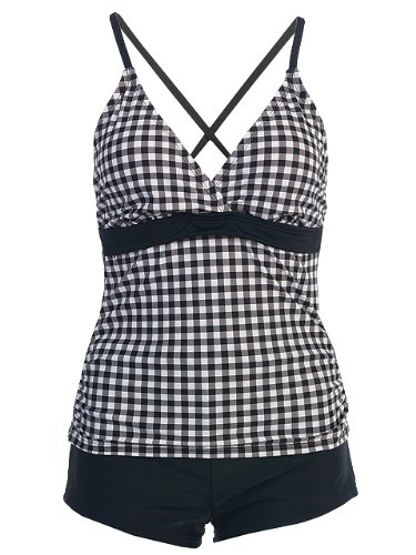 2 PC. Ladies Gingham Black Tankini Swimsuit - X-Large - Gingham Black