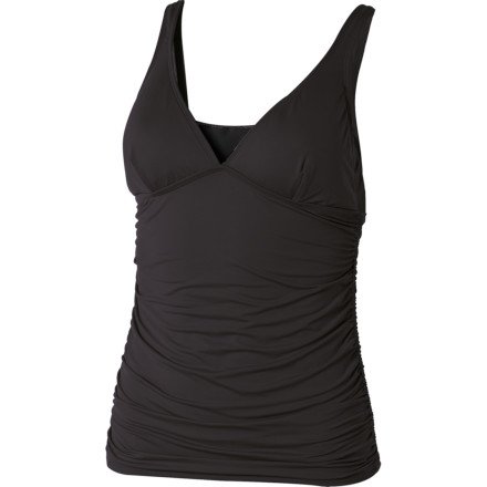 As you study the surf, you play with the bottom hem of the Carve Designs Women's Vista Tankini. It's been a while since you last surfed, but with this comfortable V-neck tankini on, you feel confident that even if you wipe out, this cute top will stay securely put and you will be completely fine.