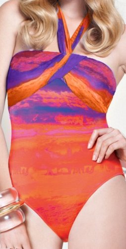 Gottex Calypso orange bandeau one piece swim suit has a gathered bust line and a removable and adjustable neck strap that can be tied around the neck or at front of the suit. It has soft cups and tummy control that makes you look and feel slimmer in your swimsuit.