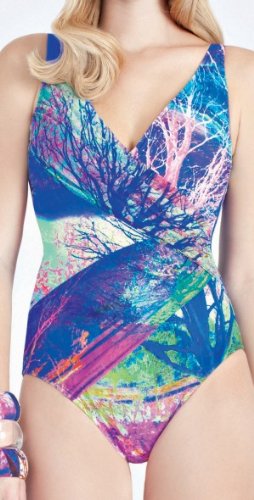 This Gottex Summer 2013 Tropical Paint V neck One Piece is a surplice bathing suit that has soft cups, tummy control, adjustable straps and offers a full coverage bottom.