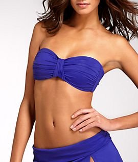 Shirred bandeau swimwear top, Stretch microfiber. Foam-lined wire-free cups with side boning for support, Self-tie back closure and stretch halter strap included. La Blanca, Style Number: 2LB3AA81.
