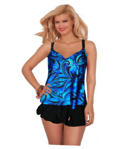 Longitude Swimwear Rainbow Blues 2-Piece Skirtini Style Swimsuit (14W)