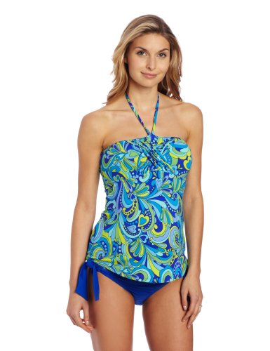 Maternal America Women's Spaghetti 2 Piece Tankini, Blue Paisley/Royal, X-Small