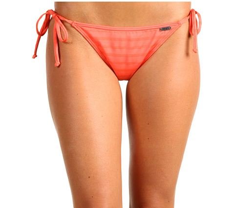Look irresistible in this scintillating Roxy bottom. Sits low on the hips. Skinny adjustable side ties. Tonal stripes add instant allure. Cinched center back seam adds extra oomph to your backside. Metal logo plate at front left.
