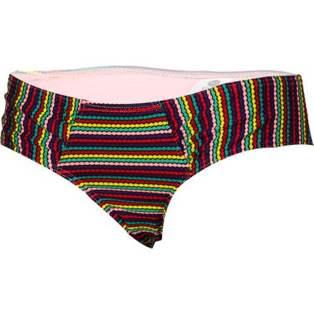 Roxy swim sunrise to sunset 70s boy brief bottoms with vertical stripes at sides and horizontal stripes at front center and back