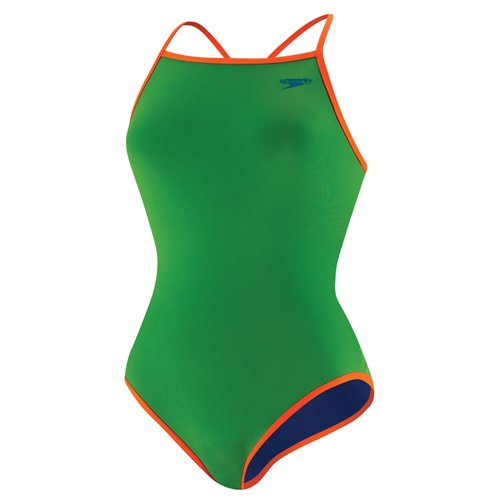 Speedo equals better fit, performance, quality, and innovation! The extreme back reversible comes from our wild flipturns performance collection and is guaranteed to add some fun to your workout. Each bright color reverses to another great look, giving you two suits for the price of one! The suit features our exclusive endurance+ chlorine resistant fabric, but in endurance lite, which is 10% lighter weight for less drag but the same long lasting qualities. In fact, the suit lasts 20 times longer than ordinary spandex, and also has our four way stretch technology for a body hugging fit and softer feel. So no bag and sag, and it looks like new for longer. The suit has popular skinny strap extremeback styling and is ideal for lap swimming, pool play, or any water activity. Look and feel your best in or out of the water, while you play, train or win in speedo, the choice of champions!