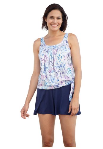 Swim 365 Plus Size Swimsuit, Side-Tie Blouson 2-Piece Skort Swim365 (Blue Purple Floral,16 W)