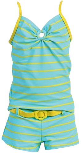 ToBeInStyle Kid's Two Piece Tankini Set Swimsuit Fully Lined Cami Shorts w/Belt - Striped Tankini - 7-8 Years