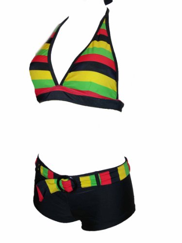 Womens Marina West Halter Boyshorts Swimsuit, Two Piece Swimwear Bikini, Rainbow with Black (Medium (4/6), Black with Rainbow stripes)
